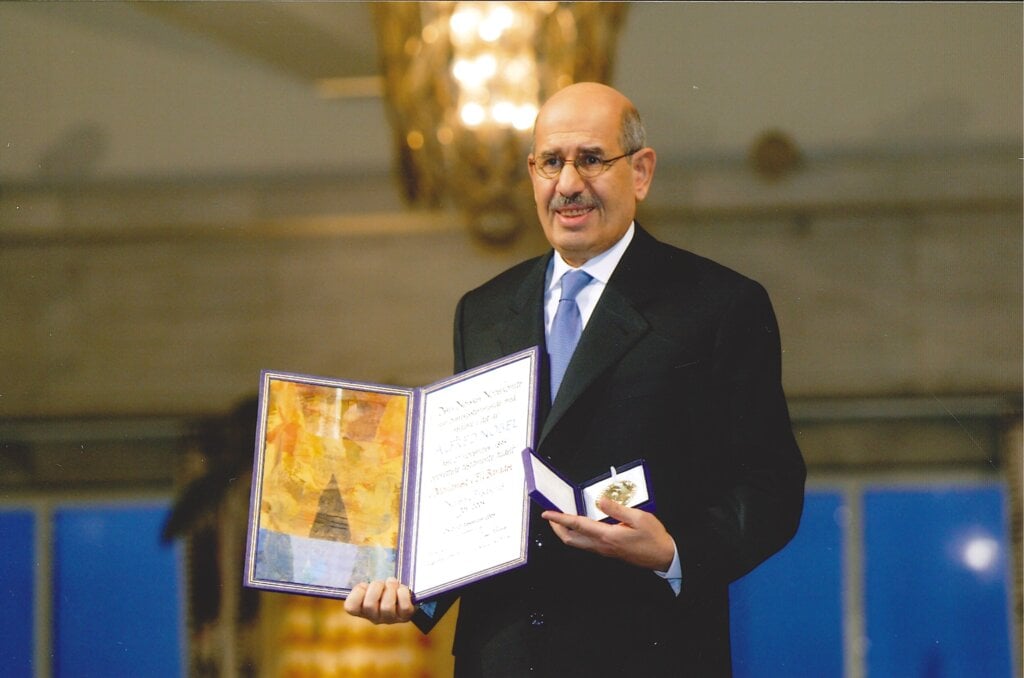 ElBaradei received the prize for his role as an unafraid spokesman for his cause. He has put forth numerous proposals relating to non-proliferation, disarmament and the peaceful use of nuclear energy. According to ElBaradei, the Nobel Peace Prize would help to focus public attention on disarmament and non-proliferation issues. ElBaradei has served in a number of high-level positions within the IAEA and served three periods as the elected Director General. “Verification and diplomacy, used together, can work”, ElBaradei has asserted on many occasions. In 2011 ElBaradei was an important figure in the Egyptian protests for democracy.