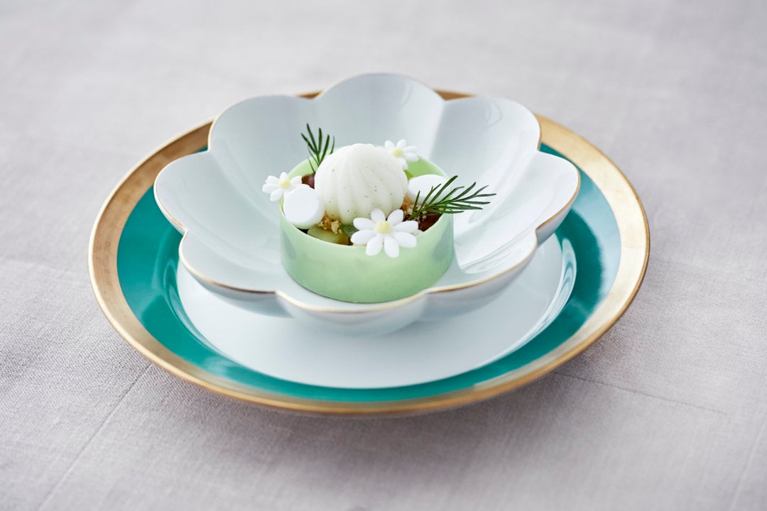 Nobel Banquet starter: Lightly baked Arctic char with crayfish broth, dill seed-infused onion, lightly smoked trout roe, crispy potato and watercress foam