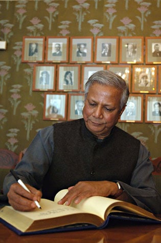 8 (of 15) Muhammad Yunus, Nobel Peace Prize Laureate 2006, signing the guest book at the Norwegian Nobel Institute.
