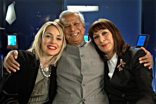 10 (of 15) Nobel Peace Prize Laureate Muhammad Yunus with Sharon Stone (left) and Angelica Houston (right), hosts of the Nobel Peace Prize Concert 2006.