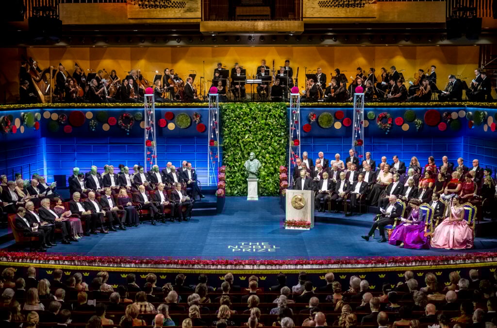 The Nobel Prize award ceremony takes place at the Stockholm Concert Hall, Sweden, on 10 December – the anniversary of Alfred Nobel’s death. At the ceremony, the Nobel Prize in Physics, Chemistry, Physiology or Medicine, Literature and the prize in economic sciences are awarded to the Nobel Prize laureates.