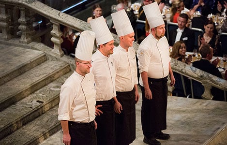 23 (of 28) The main chefs of the banquet receive applause from the guests.