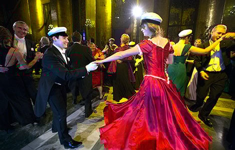 24 (of 28) After the dinner, all banquet guests move upstairs, to the Golden Hall, for an evening of dancing.