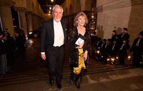 5 (of 28) Jean Tirole arrives at the Nobel Banquet together with his wife, Mrs Nathalie Tirole, 10 December 2014.