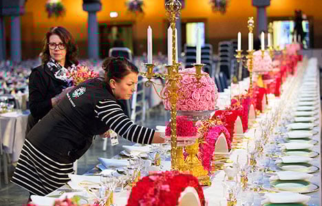 1 (of 16) The floral decorations in the Blue Hall of the Stockholm City Hall this year were arranged by the theme 'Bridges of Stockholm', inspired from Stockholm's proximity to water.