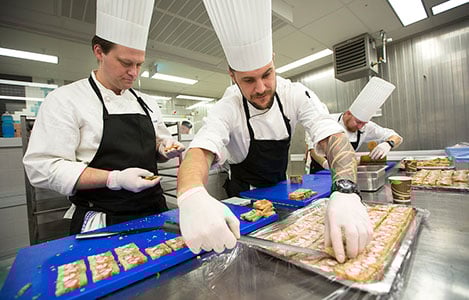 6 (of 16) The chefs prepare the evening's starter in the Town Hall kitchen.