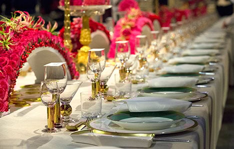14 (of 16) The table of honor is laid with meticulous precision. The more than 60 tables comprise no fewer than some 7,000 porcelain pieces, 5,400 glasses and 10,000 items of silverware.
