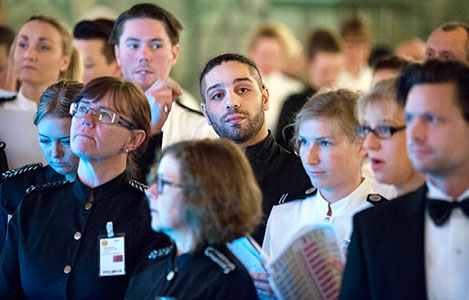 11 (of 16) A total of 43 chefs and 260 servers work with the banquet meal during the evening.