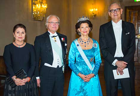 27 (of 28) From left to right: Dominique Modiano, His Majesty King Carl XVI Gustaf of Sweden, Her Majesty Queen Silvia, and Literature Laureate Patrick Modiano.
