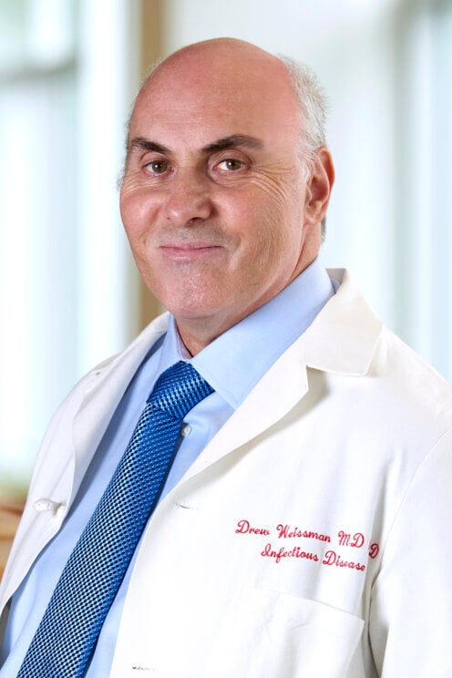 Weissman earned bachelor’s and master’s degrees in biochemistry and enzymology from Brandeis University in 1981 and his M.D. and Ph.D. in immunology and microbiology in 1987 at Boston University School of Medicine. Following a residency at Beth Israel Hospital in Boston, he took a fellowship at the National Institutes of Health, where he worked with Anthony Fauci.