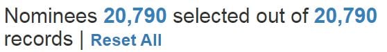 The headline displays how many persons that are currently in the dataset and how many that are within the filters you have currently selected. The ”reset all” option resets all filters to include the complete dataset.