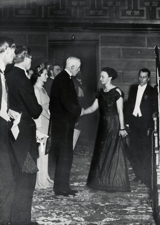 1 (of 7) Irene Joliot-Curie receiving her Nobel Prize from King Gustaf V of Sweden at Konserthuset Stockholm on 10 December 1935.