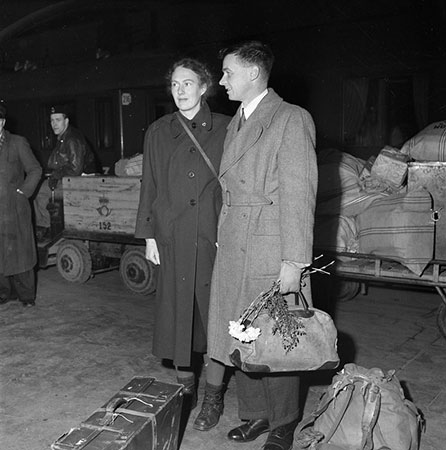 Richard L.M. Synge and his wife Ann Stephen arriving in Stockholm for the Nobel Prize award ceremony in Stockholm. Photo taken on 9 December 1952 at the Bromma Airport.
