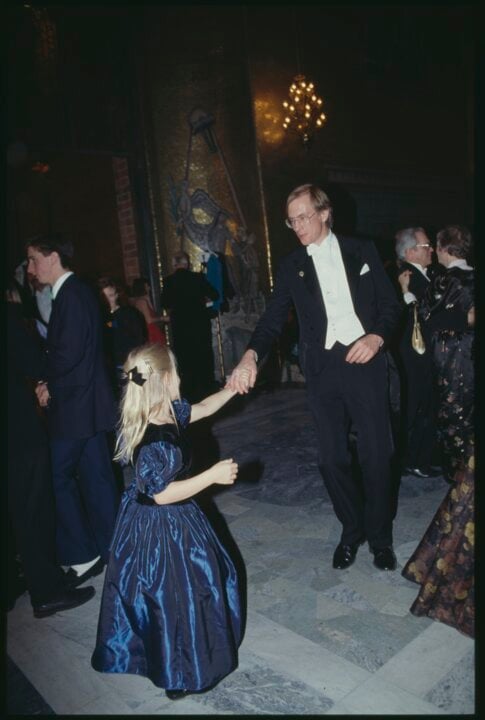 The Nobel Prize banquet at the Stockholm City Hall, 10 December 1989. Chemistry laureate Thomas R. Cech and his daughter take to the dance floor.