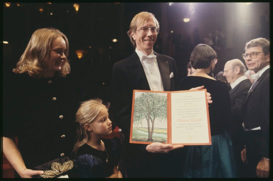 Thomas R. Cech after receiving his Nobel Prize at the Stockholm Concert Hall, 10 December 1989.
