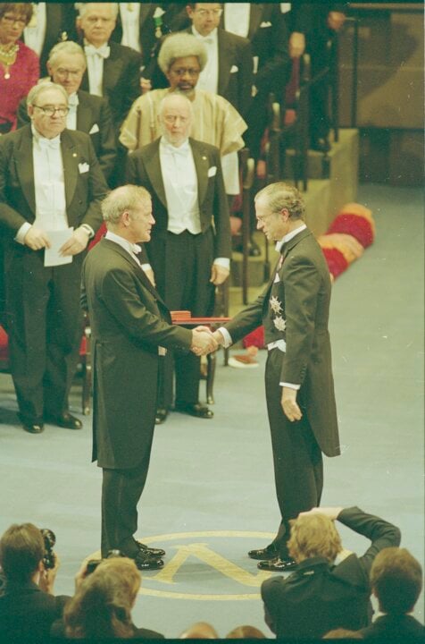 1 (of 8) Kary B. Mullis receiving his Nobel Prize from H.M. King Carl XVI Gustaf of Sweden at the Stockholm Concert Hall on 10 December 1993.