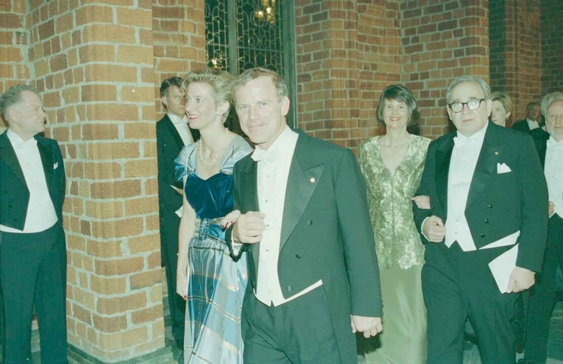 3 (of 8) Chemistry laureate Kary B. Mullis proceeds into the Blue Hall of the Stockholm City Hall for the Nobel Banquet, 10 December 1993.