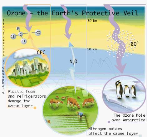 Ozone (03) is formed in the stratosphere through the splitting of ordinary oxygen molecules (02) by ultraviolet radiation from the sun. The liberated oxygen atoms (O) react, through the mediation of some arbitrary molecule (M), with molecular oxygen as follows: ![]() Ozone in small amounts Ozone for better and for worse |