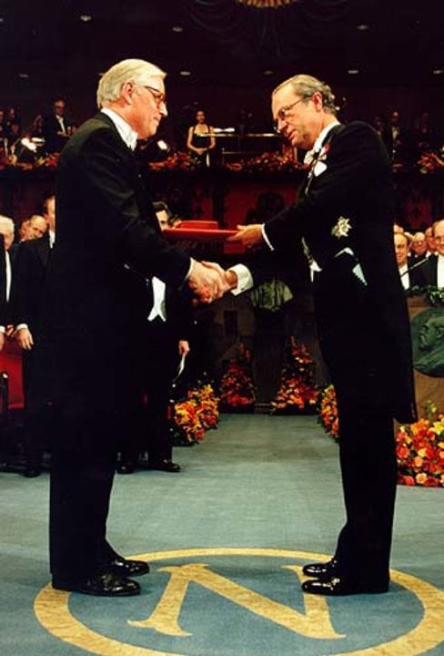 2 (of 11) John E. Walker receiving his Nobel Prize from H.M. King Carl XVI Gustaf of Sweden at the Stockholm Concert Hall on 10 December 1997.