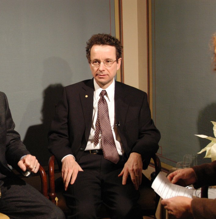 Roderick MacKinnon being interviewed in Stockholm, 9 December 2003.