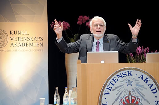 Thomas A. Steitz delivering his Nobel Lecture at the Aula Magna, Stockholm University, 8 December 2009.