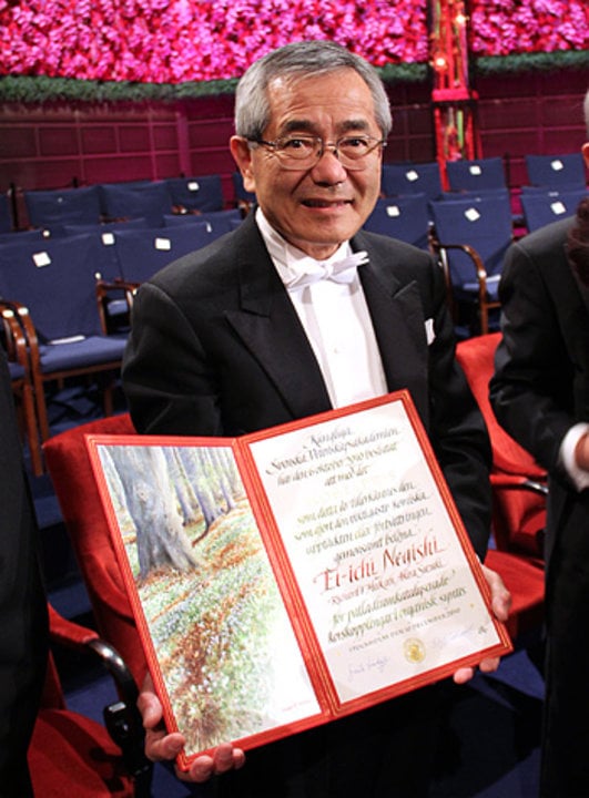 Ei-ichi Negishi after receiving his Nobel Prize at the Stockholm Concert Hall, 10 December 2010.