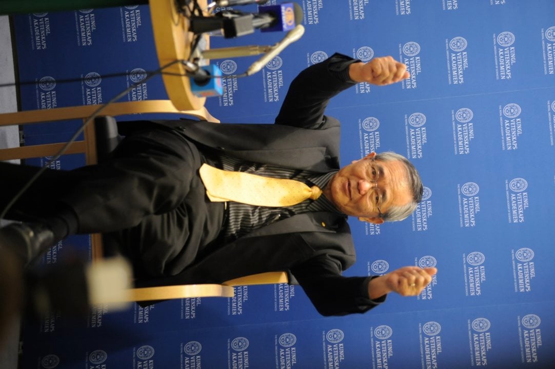 Ei-ichi Negishi at the press conference for the Laureates in Physics, Chemistry and Economic Sciences at the Royal Swedish Academy of Sciences, December 7, 2010.