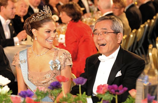 Ei-ichi Negishi shares a light moment with Crown Princess Victoria at the Nobel Banquet, 10 December 2010.