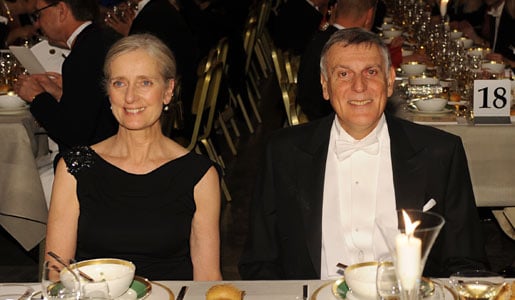 Dan Shechtman and Mrs Claudia Steinman, wife of the late Medicine Laureate Ralph M. Steinman, at the Nobel Banquet, 10 December 2011.