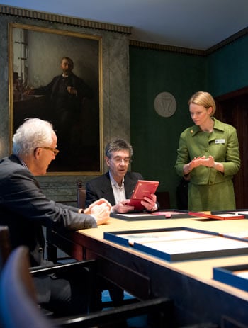 Robert J. Lefkowitz visits the Nobel Foundation on 11 December 2012. On this occasion, the Laureates retrieve the Nobel diploma and Medal, which have been displayed in the Golden Hall of the City Hall following the Nobel Prize Award Ceremony. The Laureates also discuss the details concerning the transfer of their prize money.