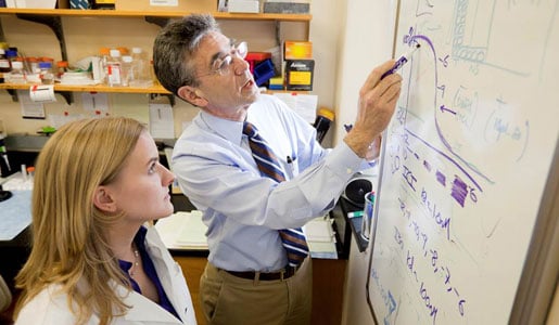 15 (of 17) Robert J. Lefkowitz (left) in his laboratory.