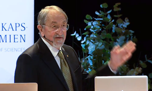 12 (of 16) Martin Karplus delivering his Nobel Lecture Development of Multiscale Models for Complex Chemical Systems: From H+H2 to Biomolecules in the Aula Magna at Stockholm University, 8 December 2013.