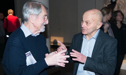 Martin Karplus and Eugene Fama, Laureate in Economic Sciences, have a talk at the Nobel Museum in Stockholm, 6 December 2013.