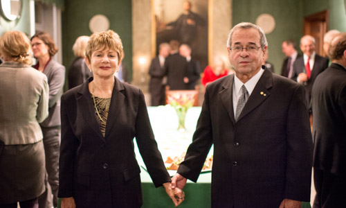 Arieh Warshel and his wife Tamar Warshel during their visit to the Nobel Foundation on 12 December 2013.