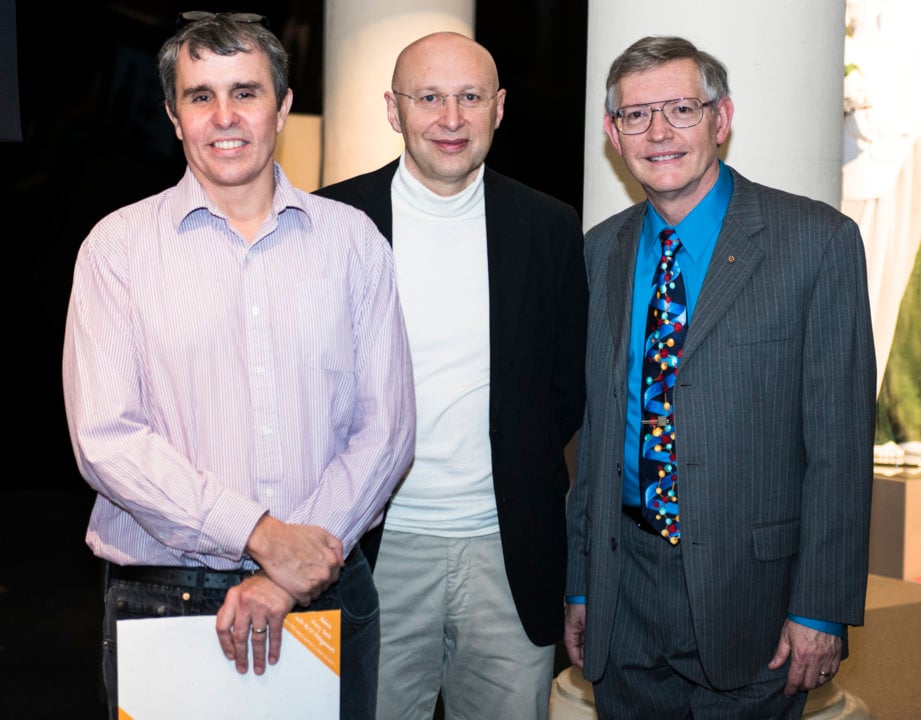 All three Nobel Laureates in Chemistry assembled at the Nobel Museum. From left: Eric Betzig, Stefan W. Hell and William E. Moerner.