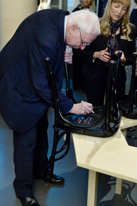 11 (of 16) Like many Nobel Laureates before him, Tomas Lindahl autographs a chair at Bistro Nobel at the Nobel Museum in Stockholm, 6 December 2015.