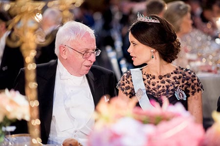 Tomas Lindahl and Sweden's Princess Sofia at the table of honour at the Nobel Banquet, 10 December 2015.
