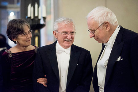 Paul Modrich and his wife Dr Vickers Burdett talking to Chemistry Lahureate Tomas Lindahl.