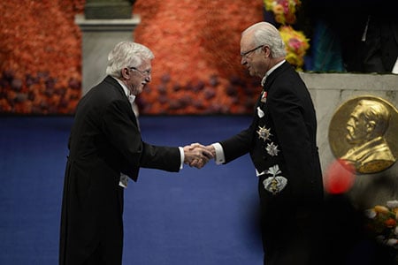 Paul Modrich receiving his Nobel Prize from H.M. King Carl XVI Gustaf of Sweden at the Stockholm Concert Hall, 10 December 2015.