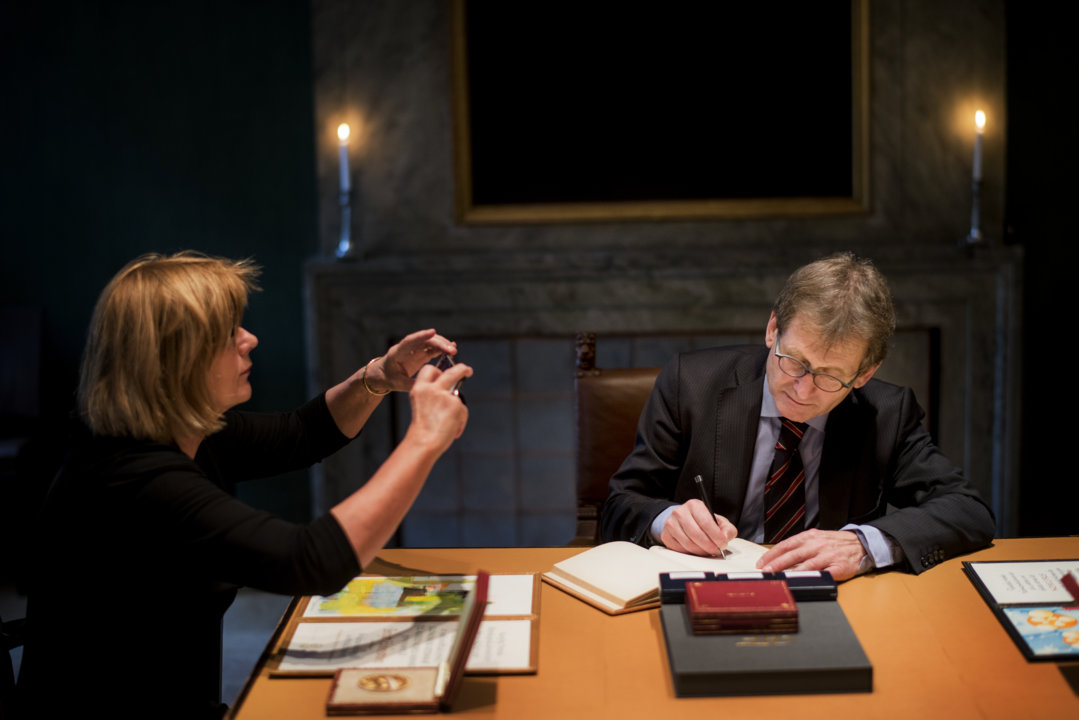 Bernard L. Feringa signs the Nobel Foundation's guest book, signed by the Laureates since 1952, during his visit to the Nobel Foundation on 11 December 2016.