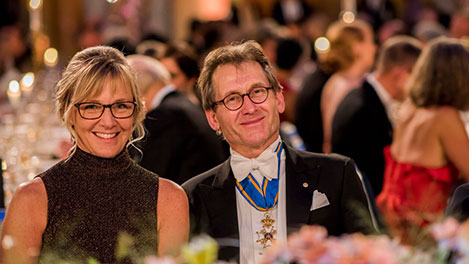 Benard L. Feringa and Jenni Ahlin, journalist, at the table of honour at the Nobel Banquet, 10 December 2016.