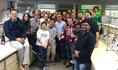 14 (of 14) Celebration in the lab at Groningen University right after the group heard about Bernard Feringa's Nobel Prize in Chemistry.