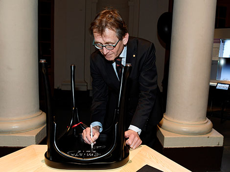 12 (of 14) Like many Nobel Laureates before him, Ben Feringa autographs a chair at the Nobel Museum in Stockholm, 6 December 2016.