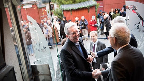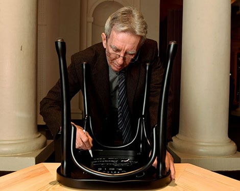 12 (of 16) Like many Nobel Laureates before him, Jean-Pierre Sauvage autographs a chair at the Nobel Museum in Stockholm, 6 December 2016.