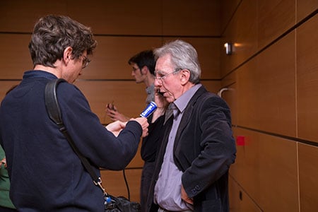 14 (of 16) Jean-Pierre Sauvage in interview at a press conference at Strasbourg University after the announcement of the Nobel Prize.
