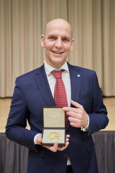 1 (of 15) The Nobel Prize medal and diploma were presented to chemistry laureate Benjamin List at Harnack House, Max Planck Society for the Advancement of Science in Berlin, Germany on 7 December 2021.