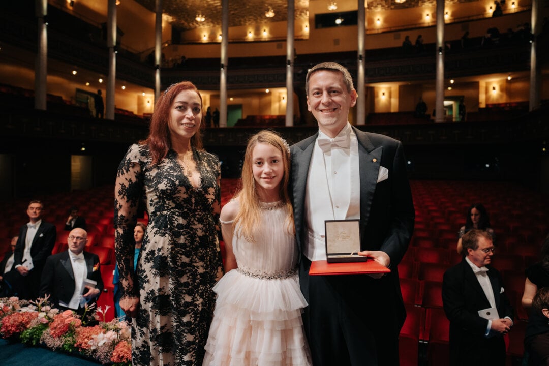 3 (of 12) John Jumper and family showing the medal after the Nobel Prize award ceremony on 10 December 2024.
