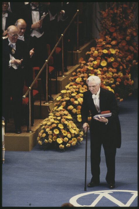 1 (of 6) Trygve Haavelmo after receiving his prize at the award ceremony in the Stockholm Concert Hall, 10 December 1989.