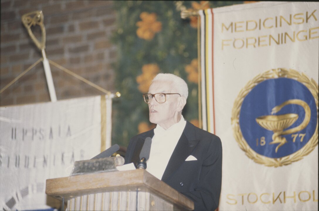 4 (of 8) John C. Harsanyi delivering his speech of thanks at the Nobel Prize banquet in the Stockholm City Hall, 10 December 1994.