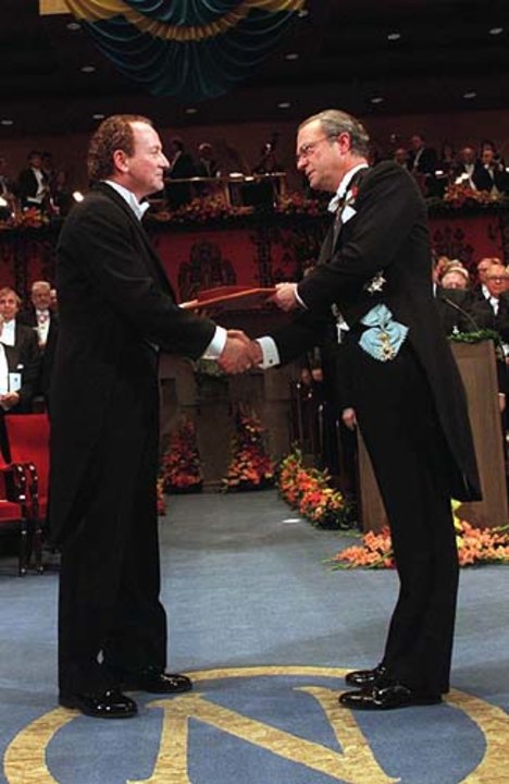 1 (of 12) Robert C. Merton receiving his Prize from the hands of His Majesty the King.
